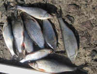 13 апреля невзирая на нелюбимую многими дату я рыбачил на истоке Невы. В КОРМУШКЕ Фидера я утрамбовал готовую прикормку ЧЕСНОК от фирмы "НЕВОД". Через 10 минут была поклёвка: я от восторга поторопился и вытащил крючёк с объеденным червём. Осознав ошибку, следующую поелёвку я не погорячился и вытащил плотицу в 300 грамм. Потом в клёв плотвы затесался один елец за 200 грамм. К полудню у меня было полтора десятка приличных плотвиц.Когда запас прикормки закончился, клёв плотвы прекратился на час. Потом попался один окушок не более 150 грамм - я его отпусти и стал сматываться.