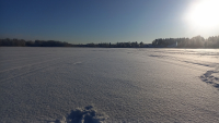 Удивил еще и лед. Я ожидал, что по таким морозам он уже будет сантиметров 40, оказалось - нет. Меньше тридцати, и при этом местами - двойной. Сантиметров 15 смерзшейся каши, под ней около 10 см нормальный лед. И совершенно непредсказуемо , рядом и монолит, и метрах в 10 - бац, и двойной. Но по крайней мере ходить было не сложно, снега много, но он легкий, рыхлый, без проламывающейся верхней корки.