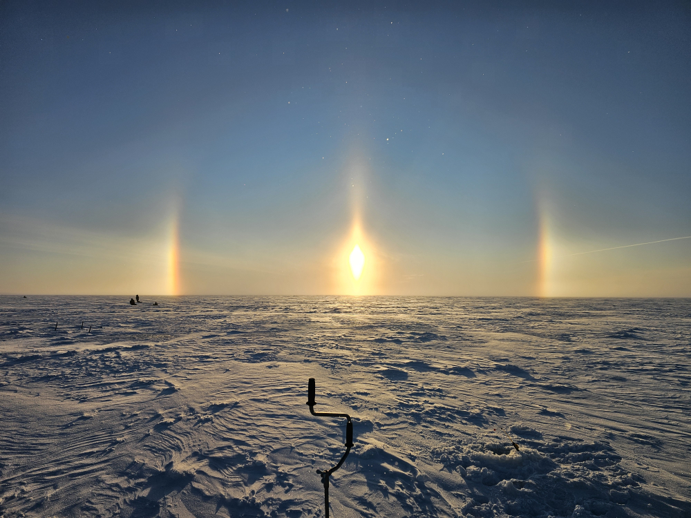 Сегодня в районе 7 утра припарковались у дамбы на улице Ручейная у пляжа и пошли в море с желанием пройти км 3. Примерно в 100 метрах старый лед закончился начались свежие стяжки которые под нами предательски трещали, было принято решение ретироваться назад. Поехали на парковку Ласкового пляжа, там зашли, выдавленная вода шириной метров 7 у берега вся подмерзла, пробовали 1.5-3 км от берега, сменили 4 места - безрезультатно, ни единого тычка на свежего карпа. Зато погода была шикарная и восход порадовал гала-эффектом. В 12:30 снялись и пошли к машине. У всех в округе результат был такой же или около, все сидели-скучали.