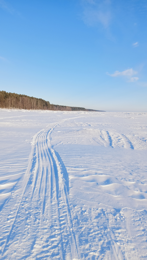 Народу на озере минимум. Несколько лыжников и всё. Следы снегохода. На нем, кстати, в заказнике нельзя. Но ему-то шлагбаумы ни по чем.