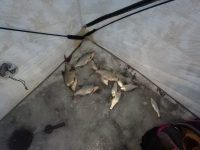 В 7-30 включился рубильник и выключился в 9-30. в Итоге 70 шт., 9 кг. Ловил на одну удочку с одной мормышкой. На вторую удочку времени не хватало.