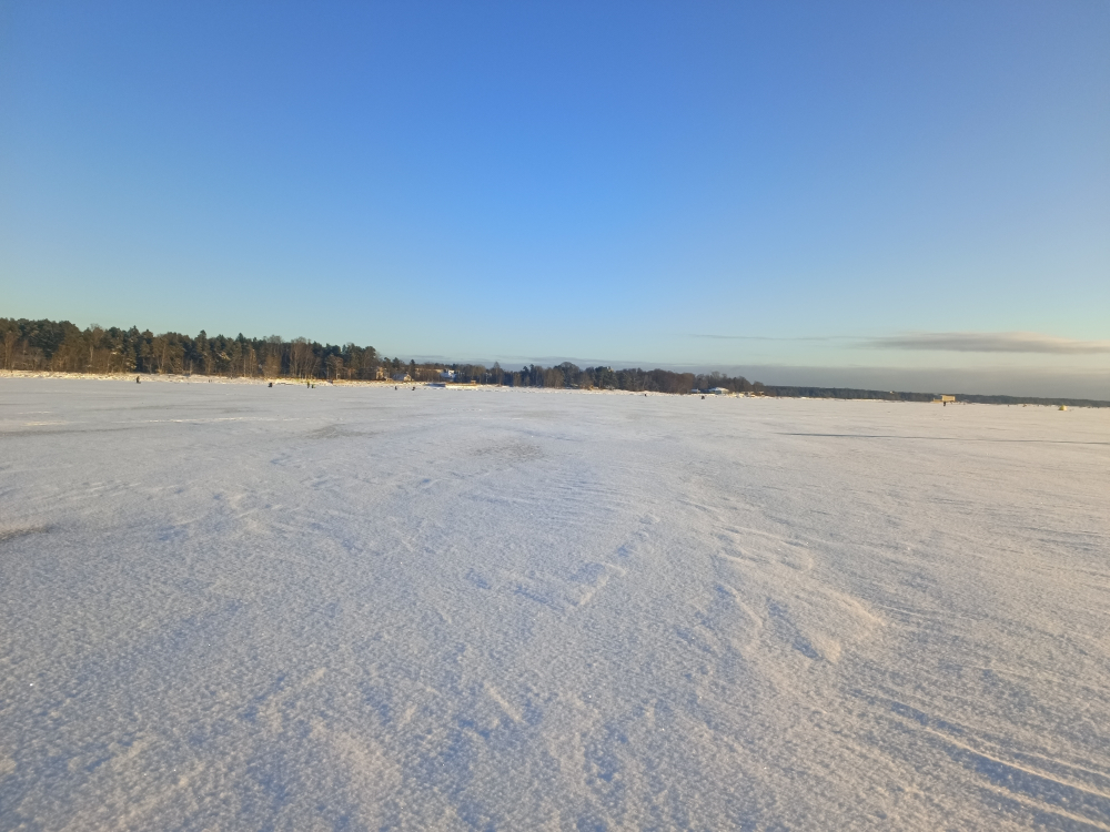 Сегодня. Комарово, недалеко от лайнера. С 10 до 13-30. Лёд 10-15 см. У берега небольшие проходимые торосы. Ловили втроём на удалении от 50 до 600-700 метров от берега. На мотыля и железо, ни одной поклевки на всех. Закормил на трёх метрах на плотву, за два часа результат ноль. По опросам соучастников от ноля до нескольких штук полосатого. Говорят пару дней назад было лучше. Погода огонь! Подышали, посверлили и то хорошо. А с шнапсом вообще супер!