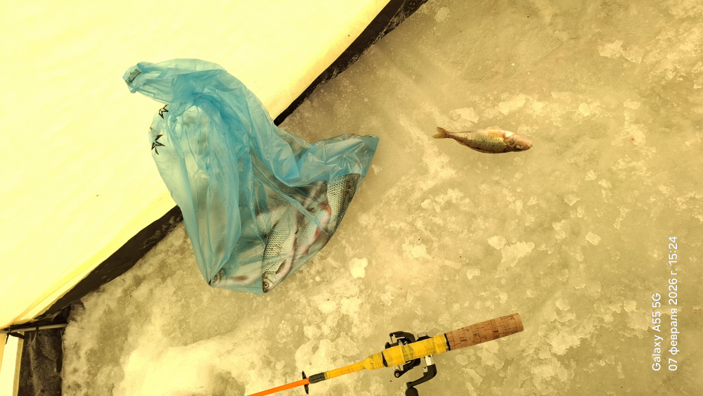Всем привет, вчера 07.02.2026 Курорт, всё супер, погода супер, идти супер, настроение тоже т.к. взял 0.7 и всё предвещало хорошую рыбалку. Но придя на место обнаружил на нем одного бодрого пенис-мэна, думаю, ладно есть у меня несколько точек и могу сдвинуться чуть в сторону. Засверлился расставился прикормил эхолот молчит 30 мин тишины и пошло… за 30 минут 10 штук. Потом пришли снова два пенис-мэна которым залива мало, правда они сели в далеке, но клев почему-то прекратился от слова совсем.