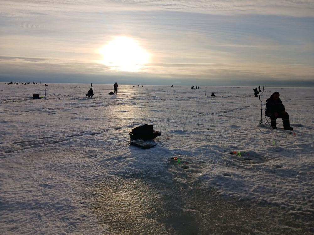 Всем добрый день! 06.03. от дота левее, глубина 19.5-20 м, 31 шт. наковырял. Один сигаретный дуплет. Много холостых дёрганий. В прилове салака и бычара). Ажиотажа не видел. Погода гуд, лёд норм, заход-выход вполне. Воды максимум до половины сапога. Народу, как в выходной. За качество фото сорян, телефон чисто для рыбалки. Рыбаки, следите за чистотой речи! Даже старые и суровые уши завяли). 10 слов, 11 матюков, всю рыбу разогнали.