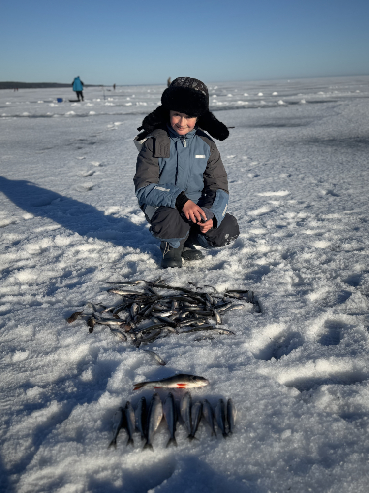 Были в Гаркалово, так как до этого в среду уже туда ездили, и по предыдущему отчету было сказано что лед рвануло, хотя там были, и наблюдал 2 трещины по метру каждая, но ближе к мысу ледовые массы стыковались. По рыбалке ловил 06.03.2026 Погода сказка. С утра на 18 метрах , ловил дальше основной группы с приятелем, чуть чуть поклевала, поймал 10 штук, и потом тишина. Начал нервничать и эксперементировать с приманками, засветка не помогала, старый карась тоже, эхолот показывал рыбы море, на 16-17 метрах просто касяк, но не клюет. И тут я решился порезать корюшку. С 12 часов я не присел. Вначале выставлено было 5 удочек, потом ловил на 3 которые успевал насадить. По итогу поймал 137 штук. В прилове корюшка разная от мелочи до мамок. Мамки клевать стали ближе к вечеру. Могли бы половить еще часика 2 , но около 4 часов, услышали источный крик со стороны берега, что лед рвануло. Пришлось быстро сматываться и уходить, Рыбалкой доволен, если кто соберется, берите с собой лодку на всякие пожарные.Всем удачи в рыбалке.