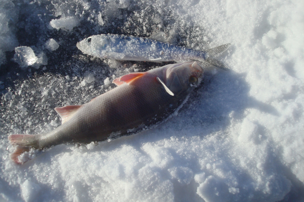 Ветер со снегом заметал лунки и уносил пакеты, но с ног не сбивал и ловить сильно не мешал.