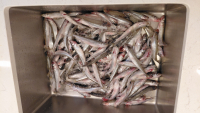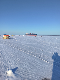 Сегодня ЮДФЗ заходили через тоннель, прямо от решетки в море примерно километр, глубина 11 метров, результат с 8 до 15 - 42 корюшки на двоих, наживка карась, карп. Пару раз переставлялись толку ноль. Вокруг народ тоже скучал.