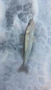 Вчера поехал туда же, где во вторник ловил окуней, только вместо палатки взял с собой двух друзей. Навигация работала. Пришли на место забросили блёсны, а в ответ ни гу-гу. Через некоторое время поступило предложение попробовать мормышку. И что бы вы думали? Сразу поймал. Вернулся на предыдущую лунку и опять поймал, потом второго, но помельче. Поймав и отпустив совсем уж мелкого, я смотал эту снасть, достал блесну и побежал догонять товарищей. Но рыбы так и не нашли, хотя от нуля все ушли.Один компаньон поймал на одном пятачке на разные приманки трёх весьма небольших окушков, другой одного, а мне Залив больше ничего не отстегнул, мол, хватит и того, что с утра на мормышку взял.