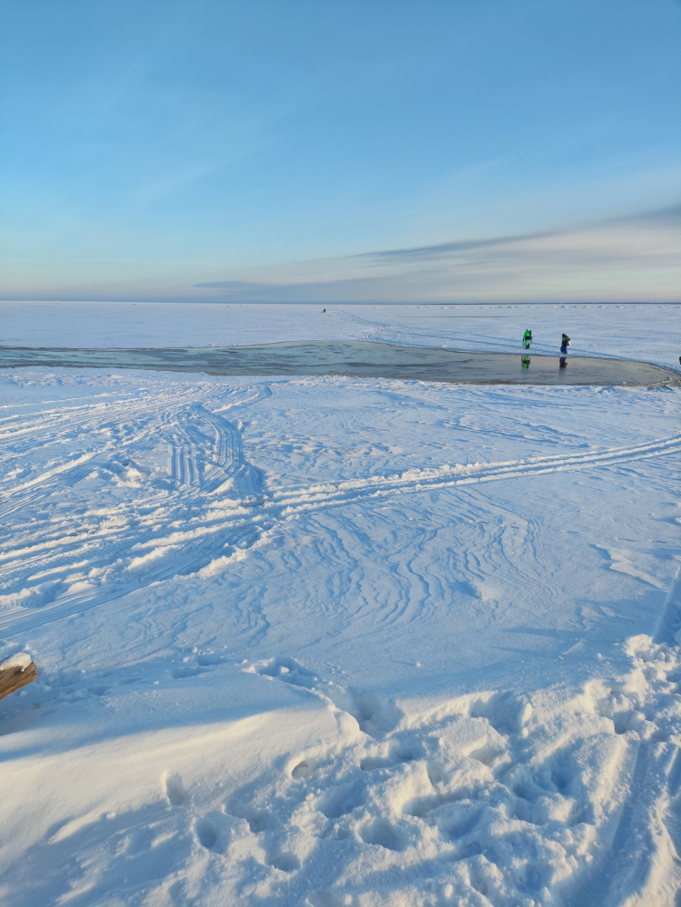 Вчера был в Большой Ижоре. Пешочком рванул до форватора. Ловил на 11 м. 39 штук. Средне мелкая корь. Дорога тяжко далась особенно обратно. Засветка и смена наживки играли роль. Начал ловить только к 11. И до 15:30 уходил ещё клевало, но надо было мчать на электричку. С утра выход на лёд был вполне приличный немножко воды было на обратном пути. Воду выдавило уже гораздо сильней вдоль всего берега по щиколотку воды было. Поэтому без сапог не советую.