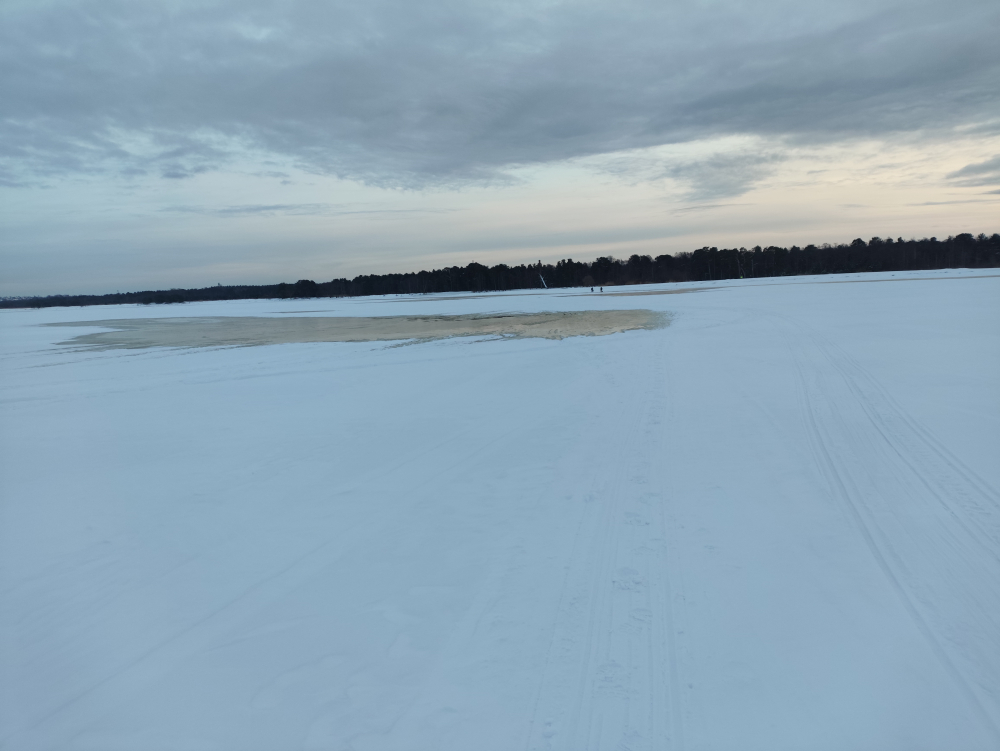 На обратном пути метрах в 500 от берега живая трещина 30-50см. Причем утром ее не было.