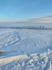 Марш-бросок на 3 км - это вам не 21-й км и не дамба.))). Но, кстати дошли достаточно легко, снега на льду не много.