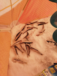 23 метра глубина под нашими ногами, наживка лучший карась с кондрашке, и вроде по всем читаемых мною отчётов как раз в этом месте должна гулять чёрноспинка и кушать этого карася стуча зубами, а на деле всего одну полупрозрачную корюшку поймал и на этом всё.
