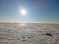 Снега на льду не много, но из за торосов прогулку легкой не назвать. В обозримом пространстве особого клева тоже не было.