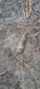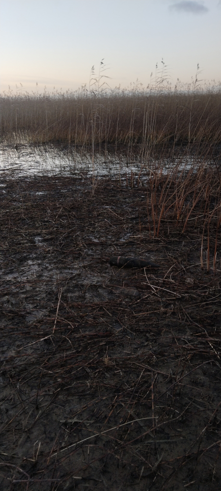 Примерно в 12ть пошёл к берегу. По весне оборвал зачётную колебалку, а так как воды мало, решил сегодня её найти, но... железо не найдено, а эхо войны есть, (находка на фото).