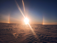 Зеленогорск. Лучший рассвет с начала года, хоть и начался не совсем удачно - с ненамолотого с вечера кофе, сломавшегося автоснегоочистителя, да еще и выйдя на начальное "блюдо" 9,2 по эхолоту с косяками чго-то понять, что остатков на катушке не хватает дотянуться до дна... Обидно... Двигаюсь по свалу вверх, наконец нахожу дно, тишина... Выхожу на около 6 метровый уровень чуть в сторону перетекающий в ямку, перехожу на уже зарекомендовавшую себя на заливе "клипсу" и со второй лунки вытаскиваю полосатика... Но это уже работало! Пробую привязать прошлогодний обрезок прутка, цепляю цепочку, нахожу глубину и... обламываю барашек катушки... ((( Приходится "клипсовать" дальше... Минут по 5 на лунку - максимум один невнятный тычёк. Как итог - 3,5 полосатика на 369гр, более одной поклёвки только в первообрыбленной лунке, идти тяжеловато, лед от шнека до замка ивановской сотки. День удачный - кошке праздник.)