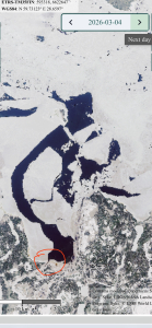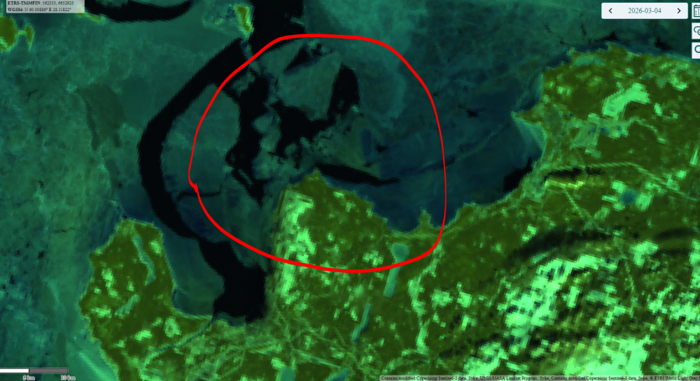 картина сейчас такая. красный круг устье реки Луга.